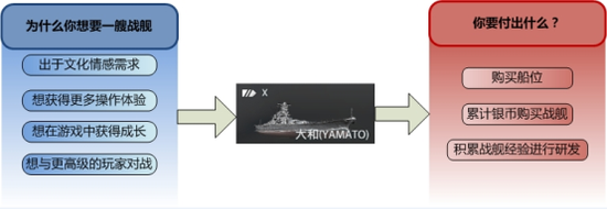 最终对战舰的销售方式是通过建立时间门槛,让玩家更多次地参与战斗。通过战斗的激烈程度与反复耗时,让玩家产出付费意愿,然后再将付费点分散满足不同玩家的付费能力。