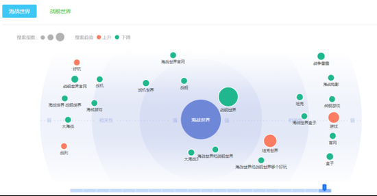 得出一个结论是,当玩家在百度搜索完《海战世界》之后就开始搜索《战舰世界》了,但反之搜索《战舰世界》后没有再关注《海战世界》,而是开始进行游戏搜索官网与辅助盒子,游戏攻略。
