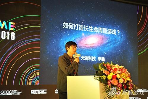 主会场峰会分为“游戏领袖峰会”及“泛娱乐主题峰会”两场同时进行。8日上午,泛娱乐主题峰会开幕。来自无端科技公司的CEO李鑫进行了主题为《如何打造长生命周期》的演讲。