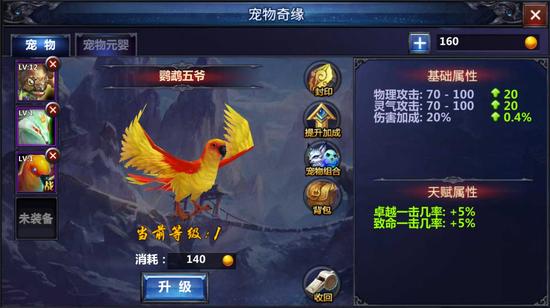 1、等级奇缘:佩戴的宠物总等级达到指定要求后即可获得额外属性加成