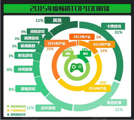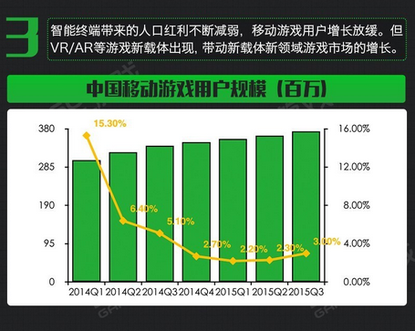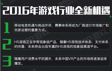 2015年,一款跑酷手游收入日进百万,卡牌游戏逆袭成为年度畅销网游品类,但也必须看到,超过60%的产品为2015年之前的老产品;移动游戏用户增长大幅放缓。2016年,VR、H5、移动电竞能不能撑起一片天?