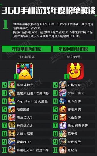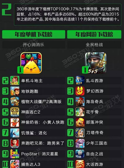 360游戏及手机助手汇总PC端、Web端及手机端下载数据,调研分析过后,正式发布《2016年中国手机游戏行业趋势绿皮书》,带来2016年手机游戏行业趋势与最权威的数据分析。