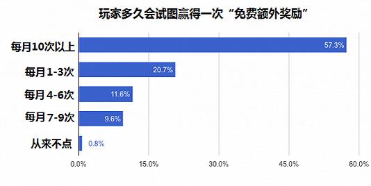 另外,手机游戏的玩家们对于虚拟货币往往有着巨大的需求,大约有60%的手游玩家每月会在游戏内点击10次以上,以获得免费的额外奖励。