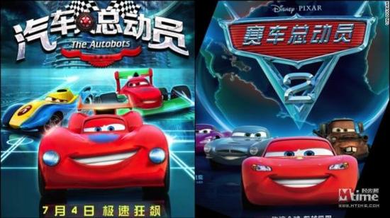 2015年7月3日,一部叫《汽车人总动员》的国产动画电影上映,随后被网友指出该片是抄袭皮克斯动画电影《赛车总动员》,从网友制作的对比图可以看出两部影片的动画造型、片名、海报都一样,《汽车人总动员》海报上还用轮胎把“人”字遮挡,引起误导。有网友大呼:“以为《汽车总动员》在大陆重映了呢,差点被这破山寨片忽悠了!”