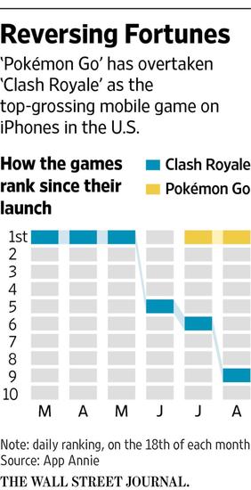 《皇室战争》iPhone平台收入被《口袋妖怪GO》超越