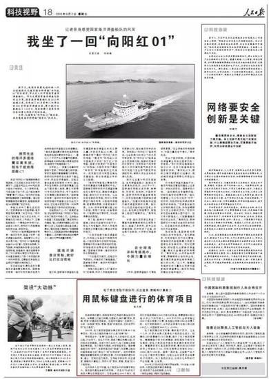 2016年9月2日,《人民日报》第18版“新知”栏目刊登了专门介绍“电子竞技”的文章《用鼠标键盘进行的体育项目》,《人民日报》作为党和国家的喉舌,对全国进行舆论引导和定调,是国家重大政策方针发布平台,此番首次刊登电竞的文章,传达了国家对电子竞技的肯定态度,其释放的舆论力量,作为电竞产业的一条重大利好,加速了电子竞技更大市场的到来。