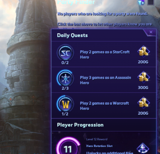 而且,在《风暴英雄》中,一盘游戏打下来的时间会比《炉石传说》这样的游戏长很多。在这样的前提下,要求玩家以特定类型的英雄在一天内获得两场或三场胜利实在太强人所难,对一些玩家来说这根本是徒增挫败感和厌烦感。