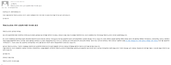 11月22日,韩国网游公司ACTOZ发布公告,宣布正式聘请前360网游事业部总经理郭海滨先生出任CEO一职。