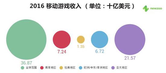 2016年全球移动游戏市场达到369亿美元,占全球游戏市场的37%。在细分领域,智能手机继续占据领导地位,2016年创造270亿美元。截止2019年,移动游戏将创造525亿美元,占总游戏市场的44%。