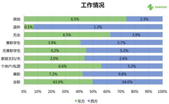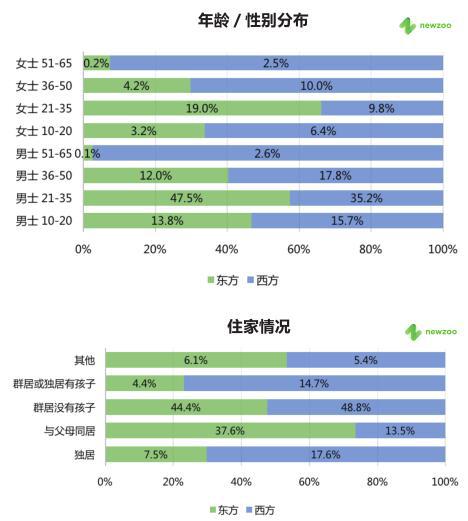 在西方市场,典型的游戏鲸鱼玩家年龄在21-35岁之间,与孩子生活在一起,有全职工作,大多数(73%)为男性。在东方,游戏鲸鱼玩家也基本与孩子生活在一起,有一份全职工作,大多数(71%)也是男性。通过比较东西方游戏鲸鱼玩家,与父母生活在一起的东方游戏鲸鱼玩家比例(38%)要比西方(13%)高得多。