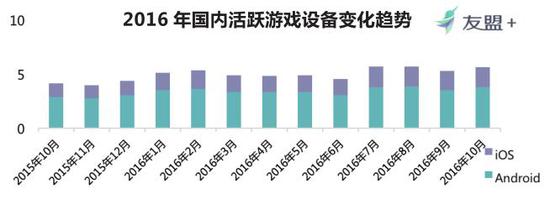 报告显示:截止至2016年10月底,手机游戏月活跃用户数已达5.64亿,全年活跃用户变化有所波动, 7~8月是用户增长的关键时期;手游用户参与度较高的游戏类型集中在较为轻量化的棋牌类游戏中;iOS用户在手机游戏中的 留存效果优于Android用户。