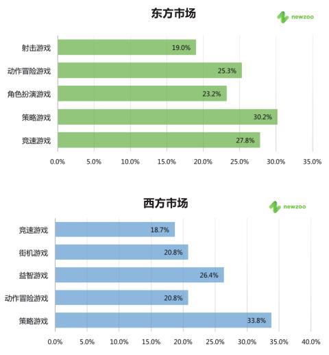 最受移动游戏玩家青睐的游戏类型(东方市场vs。西方市场)