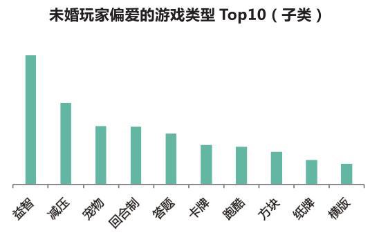 当手游用户从未婚跨向已婚状态时,对手游的偏好也有一些变化:通过对比数据不难发现,未婚用户与已婚用户在游戏偏好类型上的差别集中在卡牌与横版类游戏中,卡牌与横版类游戏在已婚用户群中更受欢迎。