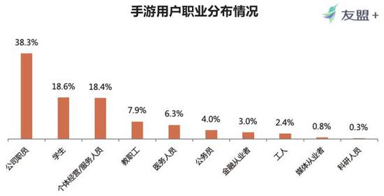 据友盟+ U-Game监测的数据显示:2016年手游月活用户已达5.64亿,也就是说1/3的中国人,都在玩手游。而未婚、未育成为手游活跃用户的主力群体。公司职员、学生、个体成为手游活跃用户的三大主力。