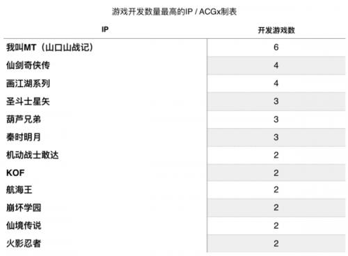 此外,无论是《葫芦兄弟》、《秦时明月》、《崩坏学园》这些纯国产作品,还是《圣斗士星矢》、《机动战士敢达》、《KOF》、《航海王》、《仙境传说》、《火影忍者》等海外作品,它们的共同点在于,这些IP对玩家的的影响力是巨大的,可以很轻易吸引用户关注到这些手游产品。