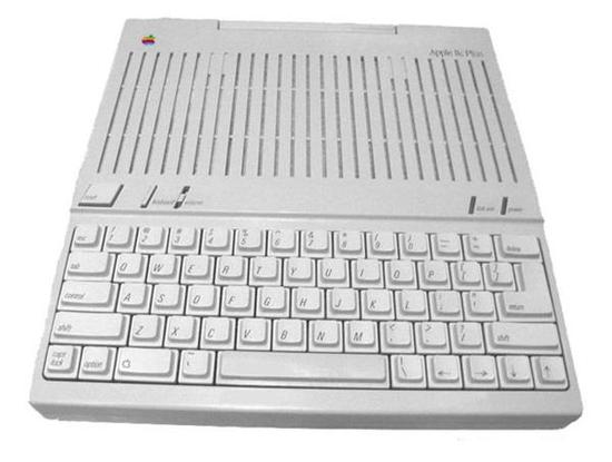 早年的苹果IIC电脑和配套键盘,注意其表示上下左右的方向键位于键盘右下方,而且呈一字排列