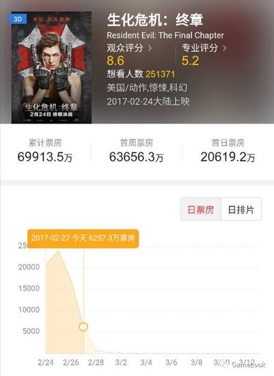 其实《生化危机:终章》是一部制作费用相比前一部减少了2500万美元成本的中档制作电影,同时根据美国影评网站的评分:烂番茄指数只有33%,且该片北美票房为6部电影中最低,但就是这么奇葩,中国电影市场上《生化危机:终章》却创造了系列的奇迹,而很有可能通过中国市场的助力,这部完结篇或将成为系列全球票房最高的一部。