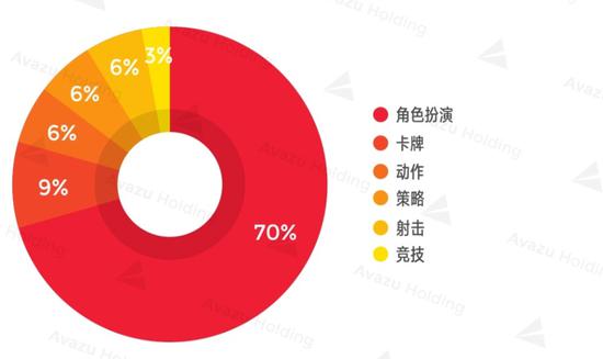 3。角色扮演是最畅销的游戏类型,其次为卡牌和策略类等。MMO类型作为角色扮演类游戏一个重要分支,已成为了手游的主要霸榜类型。