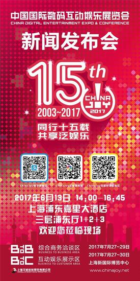 2017年6月13日下午14:00,第十五届中国国际数码互动娱乐展览会(ChinaJoy)新闻发布会将于上海浦东嘉里大酒店三层浦东厅1+2+3隆重举行。