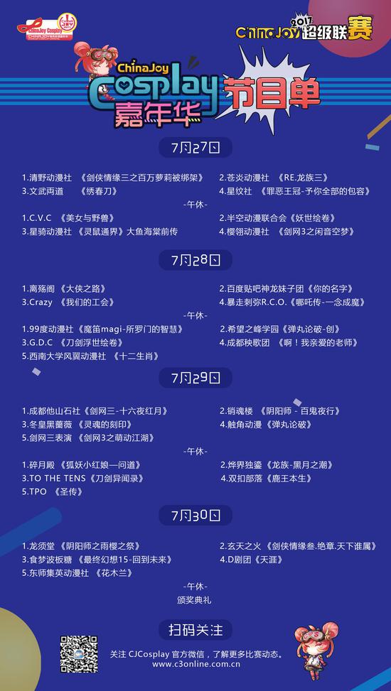 官方微信号码:CJ_Cosplay(或搜索“CJCosplay嘉年华”)