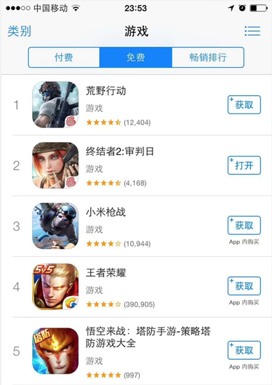 如今,这一风潮已迅速刮向了移动端,网易,小米,腾讯均以开发出了自己的“生存类射击”游戏,小米的《小米枪战》,网易的《荒野行动》,以及腾讯即将在11月8号公布的神秘游戏《光荣使命》,纷纷摩拳擦掌,抢占市场先机。而其中网易推出《荒野行动》无疑是目前其中的佼佼者。根据Store中国区游戏类免费榜显示,网易的两款本周才正式问世的新品《荒野行动》与《终结者2:审判日》分列一、二位,表现非常亮眼,而同样是本周上架的《小米枪战》则排名第三。
