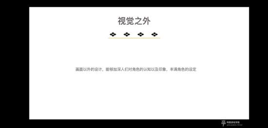 视觉之外的东西就是除了画画以外,能够让玩家在画面上去挖掘一些不单只是图形或者颜色好看的点,它还能够去体现一些其他的东西,比如说故事背景。好比一个角色他脸上有一道伤疤,那可能大家就会想发掘这个伤疤是怎么出现的,这样可以丰满角色的设定。
