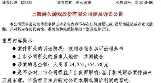 2019年1月31日,游久游戏发布了“退市风险警示”公告,表示预计2018年年度净利润将亏损约8.83亿,还预计对游久时代商誉计提减值准备约7.76亿元。根据上市规则,游久游戏连续两年净利润亏损,将可能被实施退市。