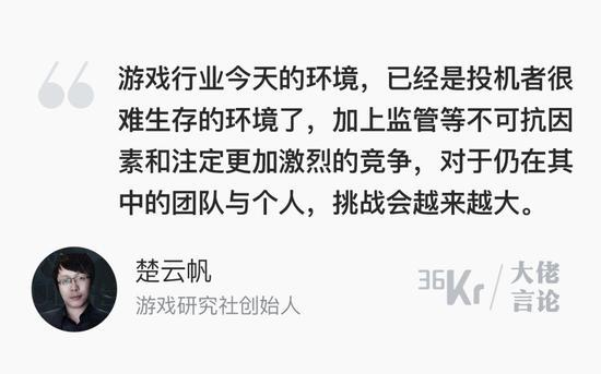 对于这些年发展起来的很多游戏企业来说,过去几年里行里能够行得通的一些商业模式,比如打版权擦边球、玩法完全借鉴因为版权保护的重视已经没有了市场,一些企业所称道的买量模式在竞争之下也会有很大的挑战,加上国内对于游戏审批的管控趋势,这个市场的竞争无疑会变得非常白热化,即便版号完全开放也会非常惨烈。