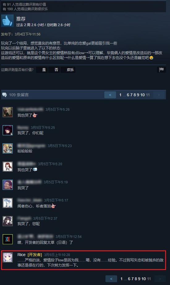 这种戏剧性地回复很快引发同情,闻讯而来的玩家强势围观,一些外国玩家甚至主动购买游戏发表评论,鼓励没恋爱过的开发者“要坚强”。