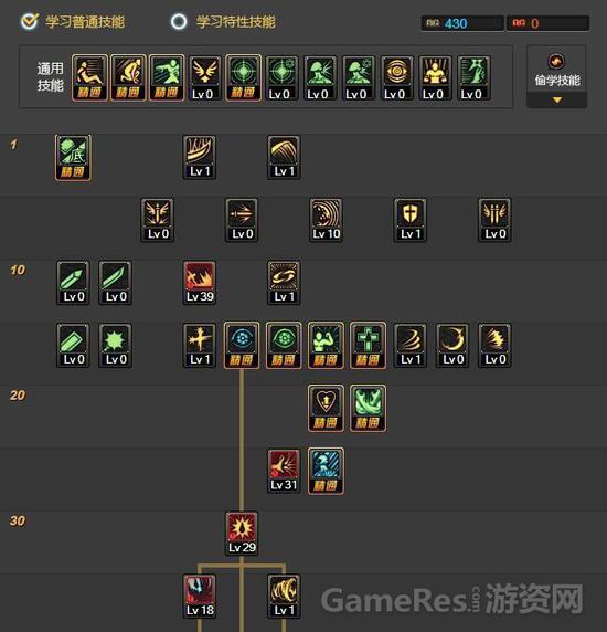 没错,大家熟悉的《地下城与勇士》也是这种游戏的代表,技能树解锁主动技能,并且刻意的只保留了最基本的树状结构(也就是后面解锁的技能从机制上就需要前面技能的支持,或者说后面的技能就是对前面技能的变种)解决了过路点的问题,但依然逃不过要么加满要么1级的宿命,因此每个版本每个职业每个用途的加点基本就是只有一套。另外,《地下城与勇士》还是典型的每个节点投入的时候要求的token数不一致的游戏,越往后的技能每点1次要求的token数越多。这种设计通过加大后期更牛逼的技能的投入成本,一定程度上解决了前期技能垃圾用户不愿意投入的问题,是个非常优秀的设计。