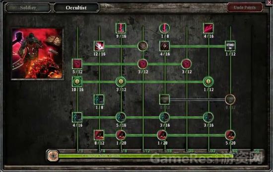 值得一提的是,如果《暗黑破坏神2》真的是技能树的祖师爷,那么祖师爷在制作《火炬之光》的时候不知道为什么也放弃了技能树,见上面的图。这种更类似于传统的“等级-能力”系统了,虽然依然还有token,但并没有树状结构,只有等级是唯一限制了。