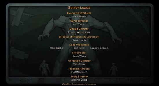Mark Darrah当时取代游戏总监Jon Warner,成为了《圣歌》的执行制作人,从游戏鸣谢表来看,他的角色至关重要,因为第一个出现的就是Darrah: