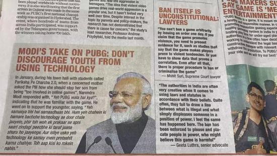 对于莫迪的这番表态,印度当地权威媒体《印度日报》的新闻标题更是直白,《莫迪接纳PUBG:不要阻止年轻人接触科技》,直接阐明了印度官方对一款流行游戏的态度:游戏在印度是一个可被允许存在的新事物,这才是负责的。