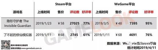 另外,由于《修仙模拟器》和《隐形守护者》这两款游戏也登陆了WeGame平台,GameLook单独摘出了相关数据。