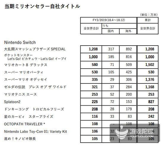 NS从2017年3月发售以来,截止到2018年年末,创下了总销量3227万台的好成绩,软件销量也突破1.6亿部。