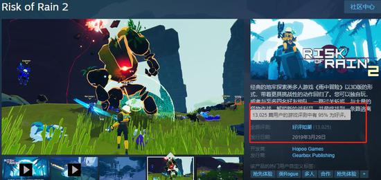 赶在月底上线的《雨中冒险2》最终反而超过了大多数3月份的游戏,名列榜单前茅。目前游戏已经有1.3万+条评价,预计销量在100-200万,并且好评率在本月的头部产品中也是最高的,达到了95%,也就是好评如潮。