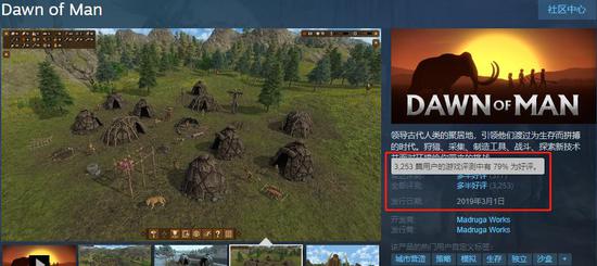游戏融合了模拟经营、RTS和沙盒生存玩法,在真实性上十分到位。目前该作已经有3253条评价,好评度高达79%。