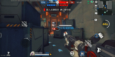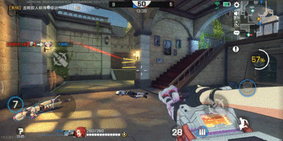 其二,由于《王牌战士》设置了很明显的瞄准辅助,划屏瞄准过程中很容易让准星”吸附“到敌人头部,这使得爆头操作变得门槛很低。也让一些纯输出型英雄发挥了超过预期的作用。以“火花”为例,这是个典型的压制型英雄。一方面,她装备着重机枪,射击启动慢但射速快、弹夹容量高但换弹较慢;另一方面,她的主动技能还能竖起一面小型屏障,方便自己作为重火力定点输出。在有高效瞄准辅助的前提下,这样一系列设定使游戏的击杀节奏变得非常快。