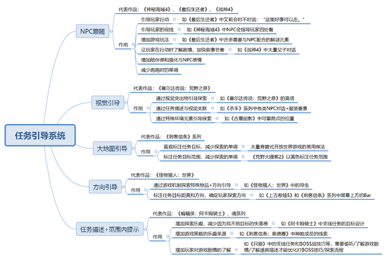 综上,可以看出适当地运用以NPC跟随为主的任务引导可以让游戏目标更为鲜明,玩家的游戏情感体验和操作体验俱佳。从中国手游行业来看,在前期引导阶段使用NPC跟随的任务引导也越来越多,而度过前期更多以传统的”大地图标识+方向引导“为主。