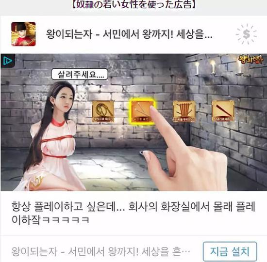“「王に俺はなる」以年轻女性为努力的刺激形象和文字进行宣传,广告文本中写着在公司的厕所里偷偷的玩吧。因为是海外运营的Facebook投放,也不受韩国的广告限制。但如果是韩国的游戏公司打这种广告,会被女权团体激烈抗议到品牌丧失。”