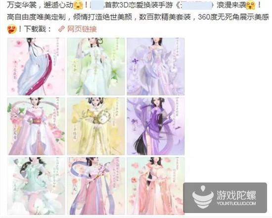 投放以直观的素材玩法展示,各大角色CV,换装多样性玩法展示,剧情走向等素材,CG素材为主。人群方向则主要包括游戏动漫,恋与制作人暖暖等竞品类游戏用户。