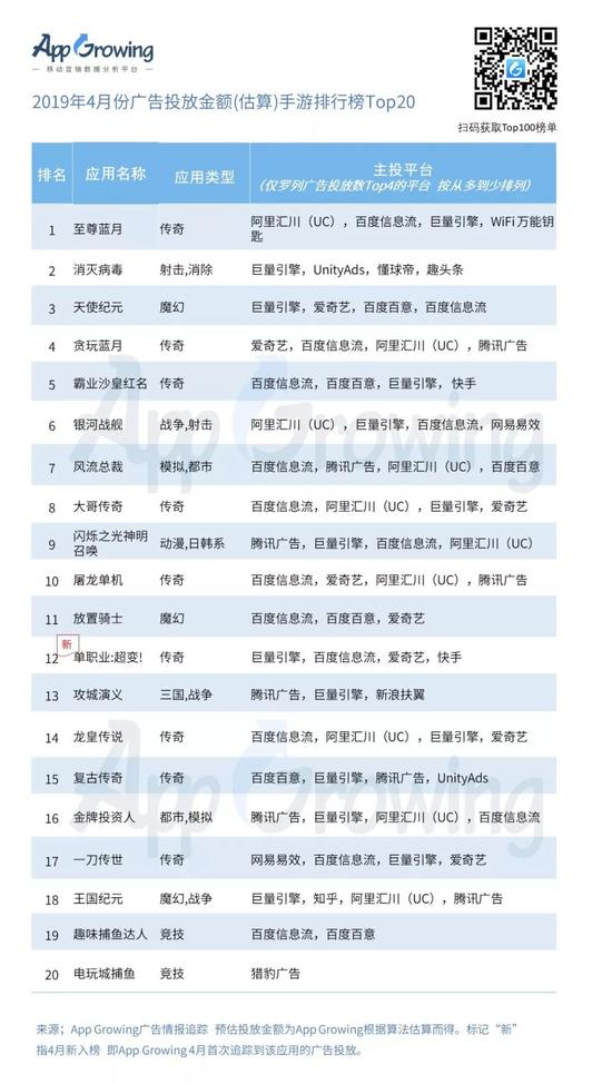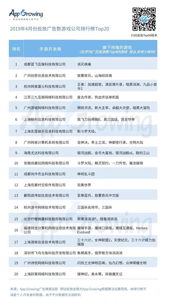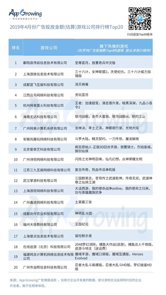 3)4月份游戏公司的广告投放金额(估算)盘点,游族网络,蓝飞互娱投放强势