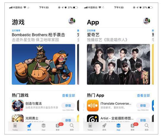 除了“Today”,在游戏、APP页面也都会有相应的推荐位。