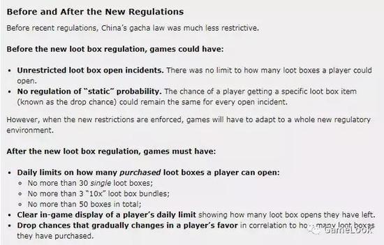 调整前,国内游戏产品中开箱子(抽卡)次数是不被限制的。且每次抽卡获得道具的概率每次都是一致的。这意味着抽中概率1%、并不是连抽100次必中一次,当概率每次一样的时候,实际100次可能抽中多次、也可能一次都抽不中。