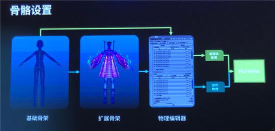 基础骨架确定以后,可以在其基础上编辑人物的碰撞体配置,而扩展骨架则需要设置其物理参数。两部分数据合在一起,在运行时,由物理系统计算其动态效率。
