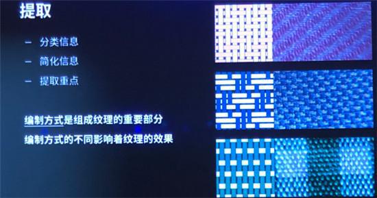 我把一些资料按照自己的分析提取,最终把它汇集成了一个二维编织图。我认为编织这块是组成纹理的非常重要的部分。
