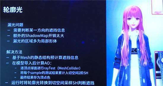 轮廓光方面,可以强调角色轮廓,增强体积感。使用轮廓光的时候,发现很多衣服存在漏光的问题,这是因为轮廓光没有ShadowMap计算。注意到漏光区域主要是局部形体,我们可以对Mesh静态结构进行预计算。