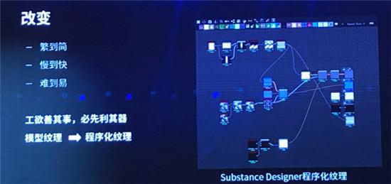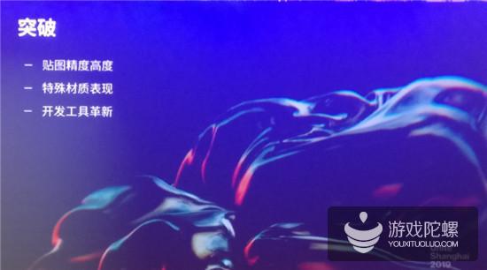 突破的话,我们做了很多特别的突破,比如说贴图精度,刚才张霁也介绍了贴图的精度方法。还有特殊材质的表现,在开发工具上我们也进行了革新。