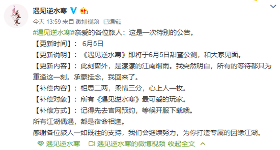 这还不算,在昨天《遇见》公布拿到版号之时,为表示热烈庆祝,百万微博粉丝就迫不及待地自掏腰包筹集了几十万的奖品,为网易“嫁女儿”送上自己的“彩礼”,直接把“遇见逆水寒”顶上热搜。