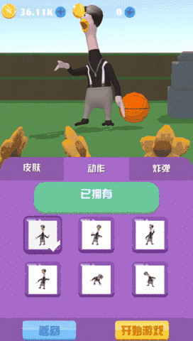 进入游戏后,用户可以在外观选项卡里选择多种人物和炸弹的皮肤,其中就包括了以蔡徐坤为外形的角色皮肤和篮球,两者都需要通过观看一定数量的广告才可以获得。